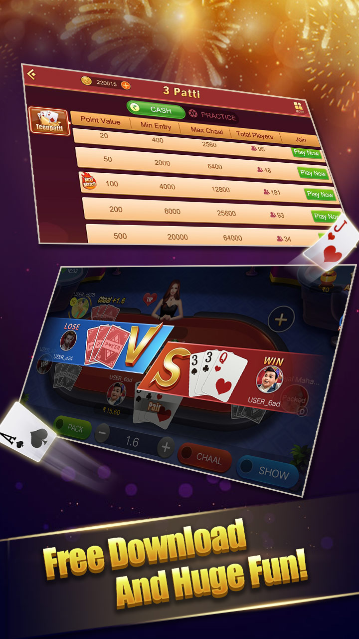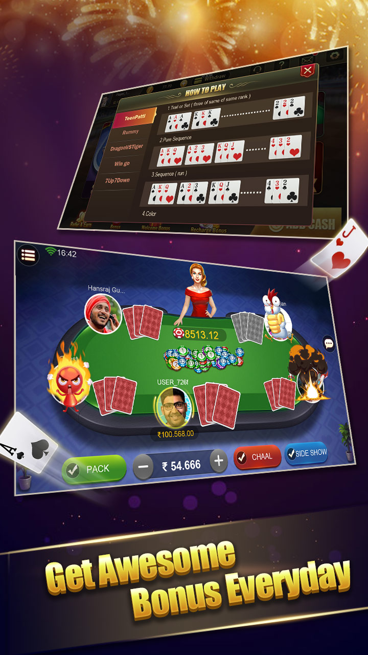 It's pretty fun but I just started it so I haven't had any problems so that's the reason why I'm giving it a three right now and I'm only been playing two of the game so far I may bring it higher if I like it even more on the other games that's the truth I can't really add anything else to it right now because I've only played the Rummy one and TeenPatti and I've only played this game for 5 minutes so I can 't give an accurate description how good this thing is yet because you never know if.